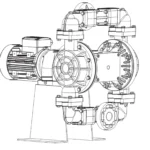 PE 15, Pumport bomba de diafragma eléctrica serie de modelo tipo servicio pesado de alta capacidad. La bomba integrada en grandes líneas de proceso industrial con tamaño de conexión 1½" (DN40), se impulsa con motor eléctrico 380V 50Hz de potencia 4 kW. La combinación de capacidad de caudal 230 lpm (13,8 m³/h) y presión máxima de trabajo 4 bar, proporciona una solución potente y confiable para líneas de proceso químico intensivo, aplicaciones de transferencia de refinería e instalaciones de tratamiento de aguas residuales a gran escala. Su estructura sin necesidad de compresor de aire reduce significativamente los costos de instalación y operación en campos de servicio pesado.